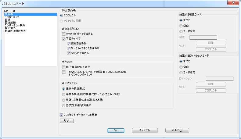 - パネル レイアウトで見つからないすべての回路図コンポーネント情報もレポートに含めることを指定します。