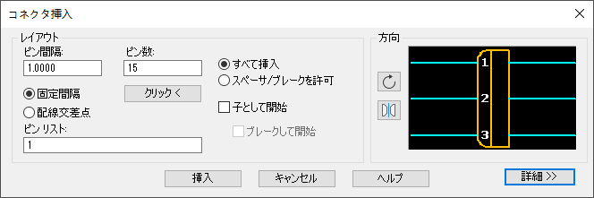 挿入点を指定 または[ズーム(Z)、画面移動(P)、配線交差(X)、水平/垂直(V)、反転(Tab)]: