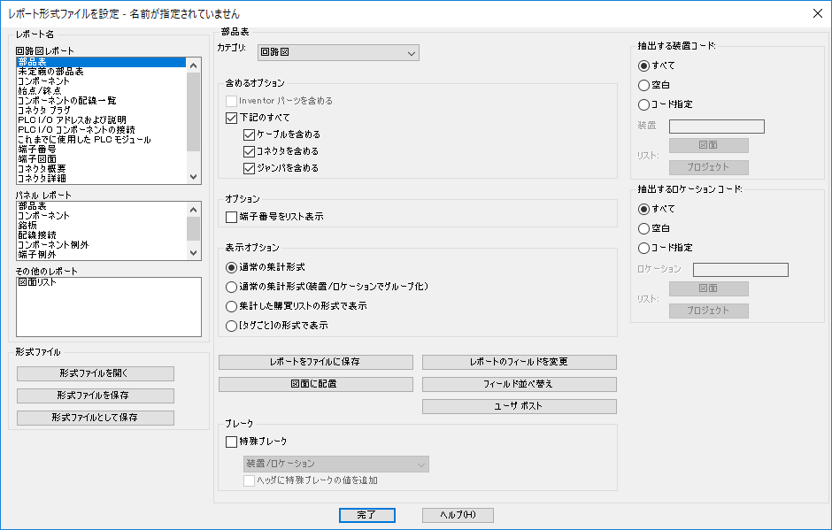 - パネル レイアウトで見つからないすべての回路図コンポーネント情報もレポートに含めることを指定します。