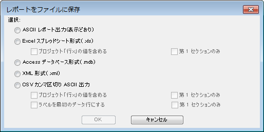 2. [レポート ジェネレータ]ダイアログ ボックスで、[ファイルに保存]を選択します。