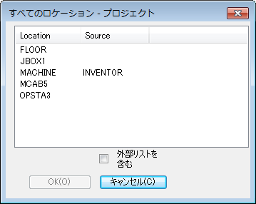 [図面]ボタンは無効になりますが、プロジェクト リストから値を選択することができます。[装置]および[ロケーション]のプロジェクト リストには、Inventor アセンブリの値があります。Inventor からの値は[ソース]列で示されます。