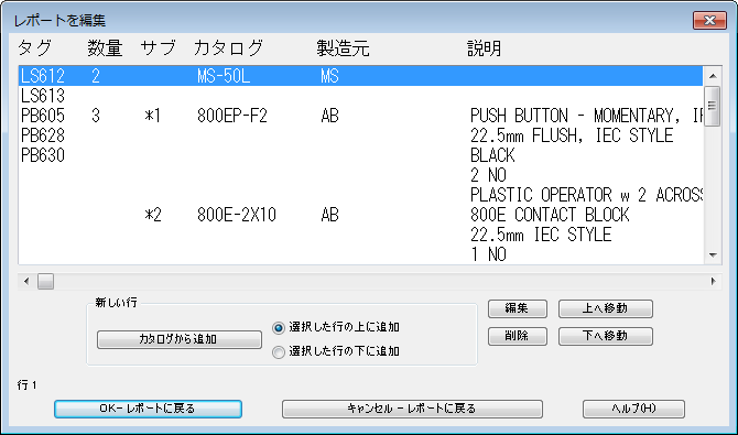 レポートを図面に挿入したり、ファイルに保存する前に、レポートを修正します。データをレポートの上下に移動できるほか、カタログから線を追加したり、を削除することができます。