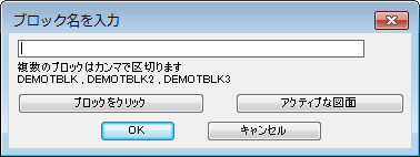注: ACADE_TITLE がブロックとして挿入された図面でプロジェクト表題欄設定を実行する場合は、[ブロックをクリック]を選択し、ブロックを選択します。