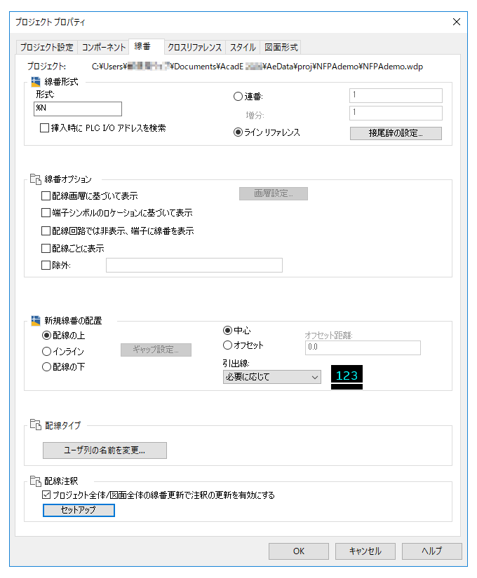 - 番号を非表示や除外したり、配線単位で番号を表示するなど、線番のオプションを設定します。