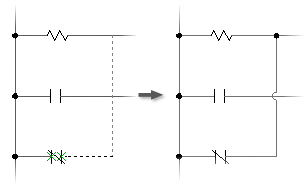 選択した 1 組のコンポーネントの位置合わせした接続点の間に配線を挿入します。配線接続点が位置合わせされている場合にのみ、配線が追加されます。