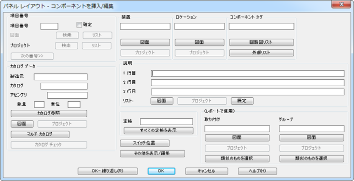 3. 必要に応じて値を更新します。表示されるダイアログは、パネル コンポーネントのタイプ(機器シンボル、銘板、端子)に応じて異なります。