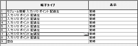 既定では、PLC モジュールを作成すると、PLC データベース ファイル エディタにより、[新規モジュール]ダイアログ ボックスで定義した端子と同じ数の空白の[端子タイプ]フィールドがリストされます。