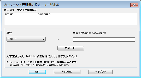 システム変数の値、または AutoLISP プログラムで抽出した値を、プロジェクト表題欄の属性にマッピングできます。