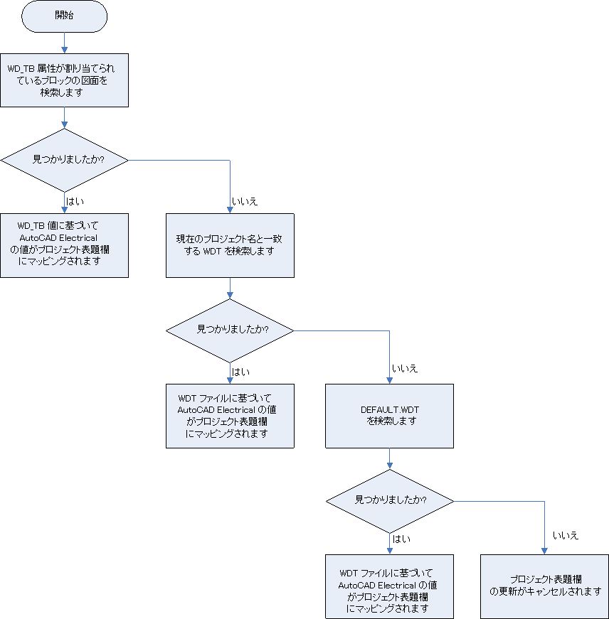 プロジェクト表題欄の更新時に使用する方法は、この順序で決定されます。AutoCAD Electrical toolset