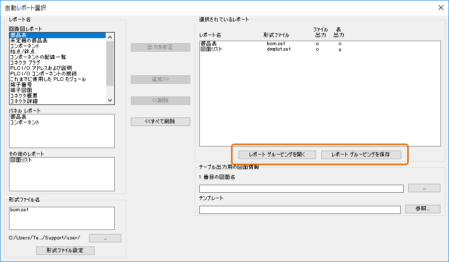 同じレポート グループを頻繁に実行する場合、グループをレポート グルーピングとして保存できます。レポート グルーピングを設定するには、レポートを実行する場合と同様にすべての形式ファイルを追加し、レポート グルーピングを保存します。形式ファイルに関する情報は、拡張子が .rgf のレポート グルーピング ファイルに保存されます。次回、このレポート グループを実行する際は、前に保存した .rgf を開きます。