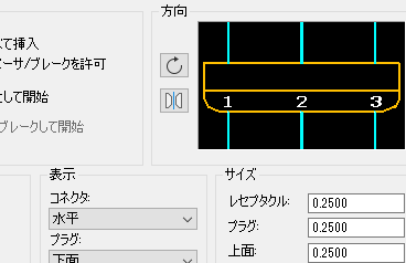 ダイアログ ボックスの表示が水平に切り替わります。