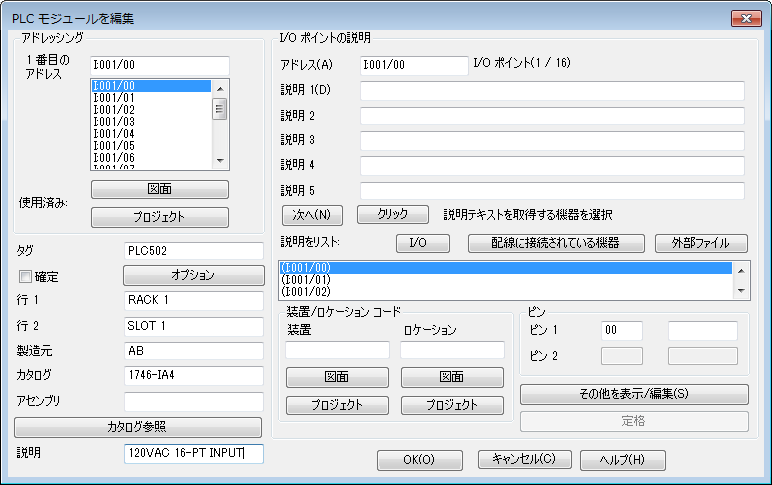 [PLC モジュールを編集]ダイアログ ボックスが表示されます。