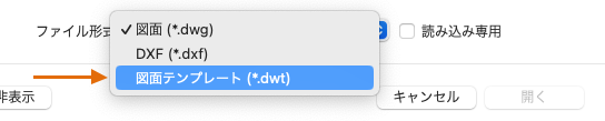 単独で作業している場合は、自分の好みに合った独自の図面テンプレート ファイルを作成し、慣れてきたら徐々に他の機能の設定を追加することができます。既存の図面テンプレート ファイルを修正するには、[開く]をクリックし、ダイアログ ボックスで[図面テンプレート(*.dwt)]を選択し、テンプレート ファイルを選択します。
