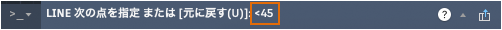 特定の角度で線分を描く必要がある場合、次に指定する点に対して角度をロックすることができます。たとえば、線分の 2 点目を 45 度の角度で作成する必要がある場合は、コマンド ウィンドウに <45 と入力します。