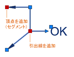 グリップ メニューは、矢印と引出線のグリップにカーソルを合わせると表示されます。これらのメニューから、引出線のセグメントや追加の引出線を追加することができます。