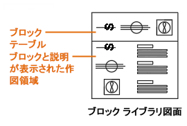 ブロック ライブラリ図面内でブロックを定義するときに(BLOCK[ブロック登録]コマンドを使用)、ブロックの簡単な説明を含めることができます。