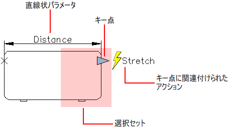 アクションでは、ダイナミック ブロック参照のグリップを操作したときの、ダイナミック ブロック参照のジオメトリの移動方法や変更方法を定義します。