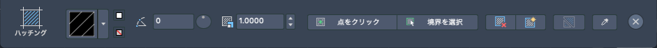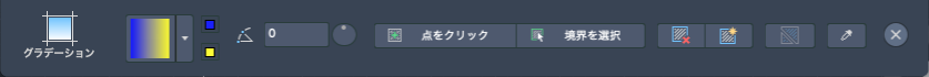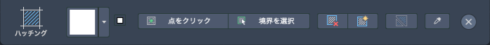 [ハッチング]バイザーは、HATCH[ハッチング]または GRADIENT[グラデーション]コマンドを開始するか、図面内の既存のハッチまたは塗り潰しを選択すると表示されます。