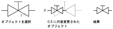 尺度を変更すると、選択したオブジェクトのすべての寸法のサイズが変更されます。尺度係数が 1 より大きいと、オブジェクトは拡大します。尺度係数が 1 より小さいと、オブジェクトは縮小します。