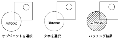 ハッチングや塗り潰しを自動調整にします。自動調整ハッチングや自動調整塗り潰しは、境界オブジェクトを修正すると更新されます。(システム変数 HPASSOC)