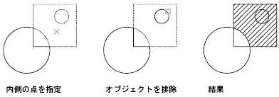 内側のオブジェクトは、自動的には検出されません。現在の島の検出スタイルに従って選択した境界の内側にあるオブジェクトをハッチングしたり、塗り潰すには、それらのオブジェクトを選択する必要があります。