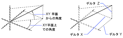Z 座標値を入力しなかった場合は、1 点目または 2 点目の現在の高度が Z 座標値とみなされます。