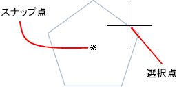 定常オブジェクト スナップをオンにすると、コマンドの実行中にオブジェクトの点を指定している間、[オブジェクト スナップ オン]領域でオンになっているオブジェクト スナップが有効になります。(システム変数 OSMODE)
