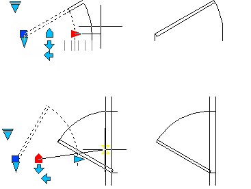 ダイナミック ブロック参照には、挿入後に参照が図面内でどのように表示されるかを変更するグリップ(下図参照)またはカスタム プロパティが含まれています。たとえば、ドアのダイナミック ブロック参照を図面に挿入した後に、そのサイズを変更することができます。ダイナミック ブロックを使用することによって、数多くの静的なブロック定義から 1 つを挿入する代わりに、形状、サイズ、構成を変更できる 1 つのブロックを挿入することができます。