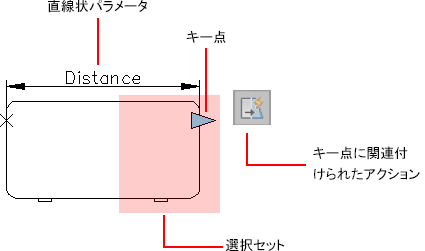 ブロック定義では、アクションおよびパラメータにより、図面に挿入されたブロックの動作が規定されます。