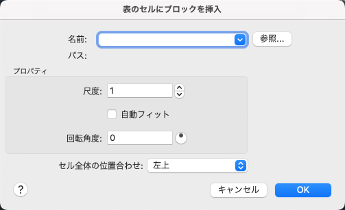 ブロック参照の尺度を指定します。値を入力するか、または選択したセルに合わせてブロックの尺度を設定するには、[自動フィット]チェック ボックスをオンにします。