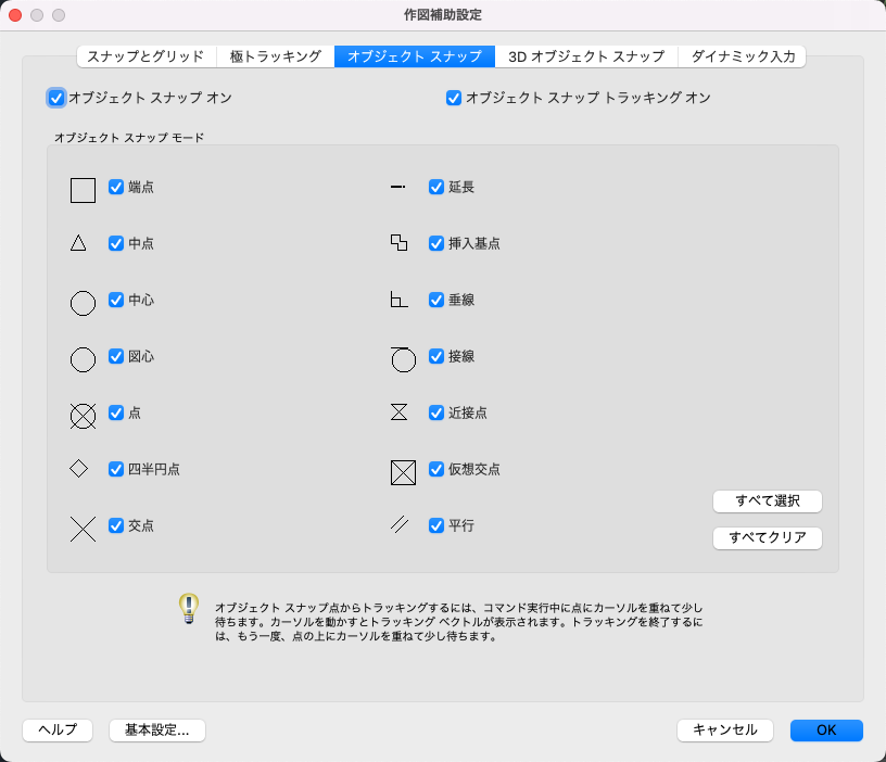 オブジェクト スナップ トラッキングのオプションを設定します。
