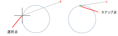 円弧、円、楕円、楕円弧、線分、マルチライン、点、ポリライン、放射線、スプライン、構築線上の最も近い点にスナップします。