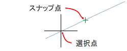 カーソルがオブジェクトの端点を越えると、延長線(線分または円弧)が一時的に表示され、その延長線上の点を指定することができます。