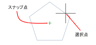 スナップ タイプを PolarSnap に設定します。スナップ モードがオンで、極トラッキングがオンの状態で点を指定する場合には、カーソルは[極トラッキング]タブの極角度の設定する極トラッキングの点に沿ってスナップします。(システム変数 SNAPTYPE)