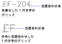 文字オブジェクトには、移動、尺度変更、回転を行うためのグリップがあります。文字オブジェクトのグリップは、基準線の左下コーナーと位置合わせ点にあります。1 行文字は、DDEDIT[文字編集 D]コマンドと PROPERTIES[オブジェクト プロパティ管理]コマンドで変更できます。