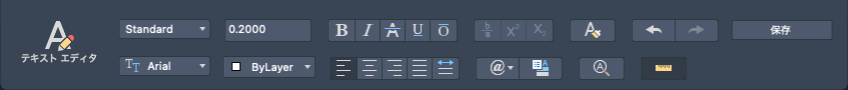 - 文字スタイルをマルチ テキスト オブジェクトに適用します。既定では Standard 文字スタイルが選択されています。