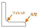 内側のコーナーをフィレットと呼び、外側のコーナーを丸めと呼びます。どちらも FILLET[フィレット]コマンドで作成できます。