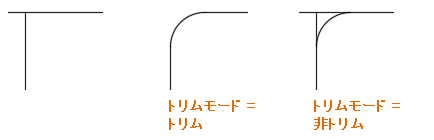 既定では、フィレットまたは丸めを定義するために選択したオブジェクトは、結果として得られた円弧でトリム、またはその円弧まで延長されます。[トリム(T)]オプションを使用することにより、選択したオブジェクトを変更するか、変更せずに残すかを指定することができます。