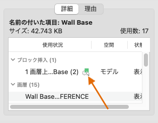 現在の図面内の名前削除できないブロック参照をプレビュー表示して特定することができます。
