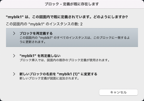 - ブロックのインスタンスを挿入します。現在の図面上のブロックのすべてのインスタンスが更新されます。