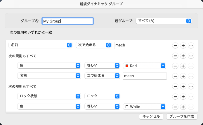 - [画層]パレットで、[新規ダイナミック画層グループ]をクリックします。
