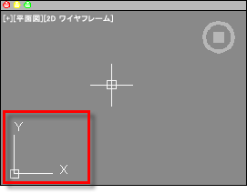 作図領域にはユーザ座標系(UCS)と呼ばれる矩形の座標系の XY 軸を表すアイコンが表示されます。