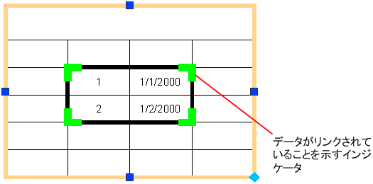 データ リンクを含む表には、リンクしたセルを囲むインジケータが表示されます。マウス カーソルをデータ リンクに合わせると、データ リンクに関する情報が表示されます。