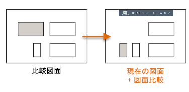 - 比較図面も開いている場合、比較図面で行った変更は、その変更を保存するまで比較結果に表示されません。