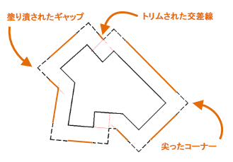 ポリライン セグメントは、一部のケースではトリムまたは削除され、その他のケースではギャップを埋めるために延長されることがあります。