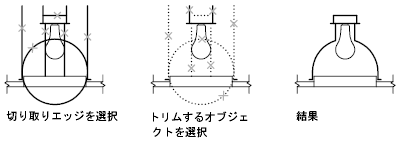 選択したオブジェクトのエッジで正確に終了するように、オブジェクトをトリムすることができます。オブジェクトは、切り取りエッジの 1 つであると同時に、トリムするオブジェクトの 1 つである場合があります。たとえば、次の照明器具の図では、円は下書き線の切り取りエッジであると同時に、トリム対象にもなっています。