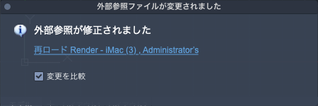 1 つまたは複数の外部参照が見つからない場合や、いずれかの外部参照を再ロードする必要がある場合は、作図領域の左下コーナー付近にバルーン メッセージが表示されます。バルーン メッセージ内のリンクをクリックして、外部参照を再ロードします。[変更を比較]をオンにすると、外部参照が参照図面と比較され、現在の図面に比較結果が表示されます。比較を終了すると、外部参照が再ロードされます。