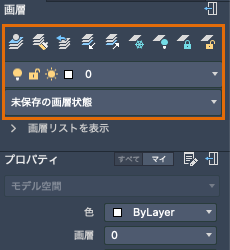 新しく作成されるすべてのオブジェクトは現在の画層に描画されます。現在の画層は、[画層]パレットに示されます。