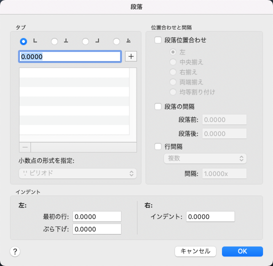 タブ位置を指定し、インデントを行い、段落の配置、段落の間隔、段落の行間をコントロールします。