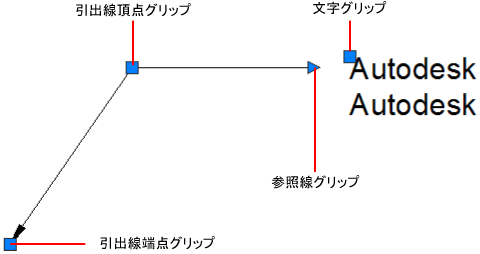 多機能グリップを使用することで、直接多くの引出線編集を行うことができます。引出線の追加と除去、頂点の追加と除去、参照線の延長または移動、引出線の寸法値の移動を行うことができます。